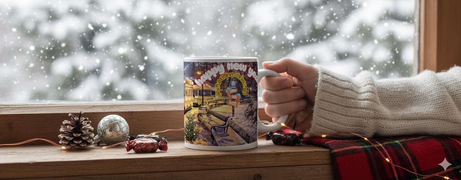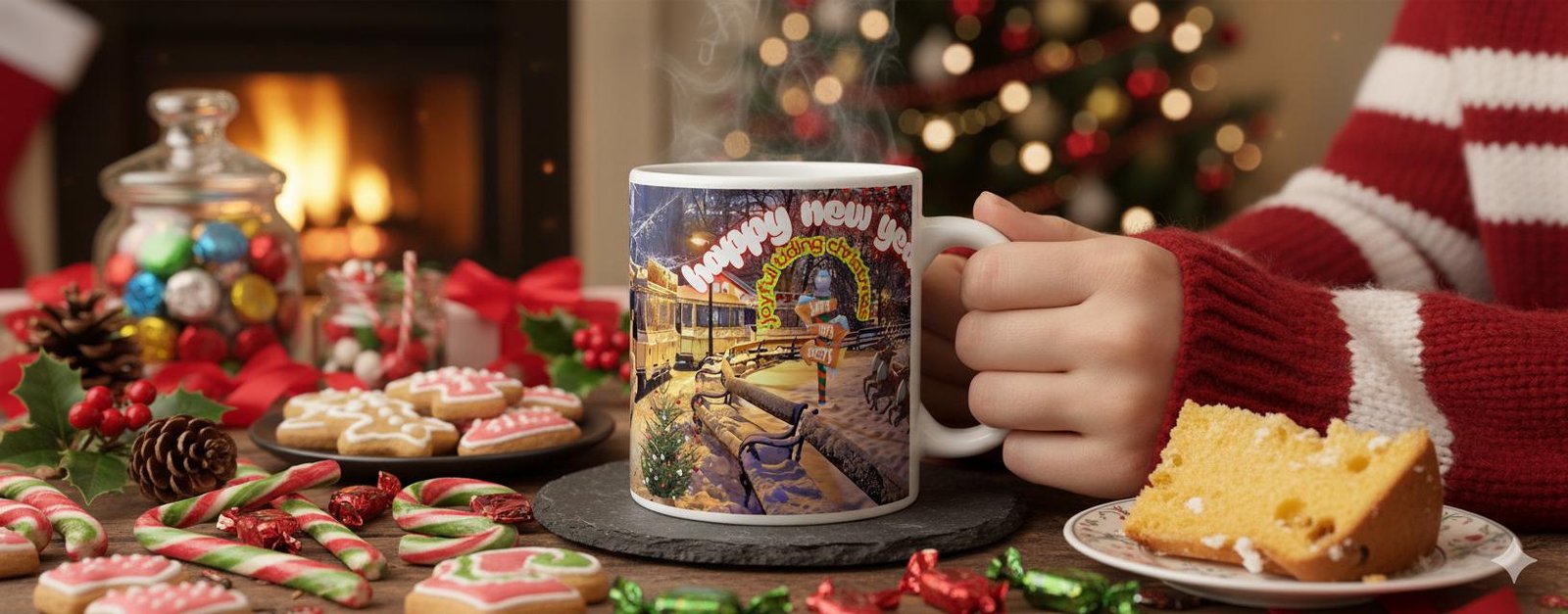 Celebrate the festive season with this beautiful Christmas mug featuring a Happy New Year banner! Perfect for sipping hot chocolate, coffee, tea, or any cozy winter beverage, this mug is a must-have for your holiday mornings, Christmas parties, and New Year celebrations.
