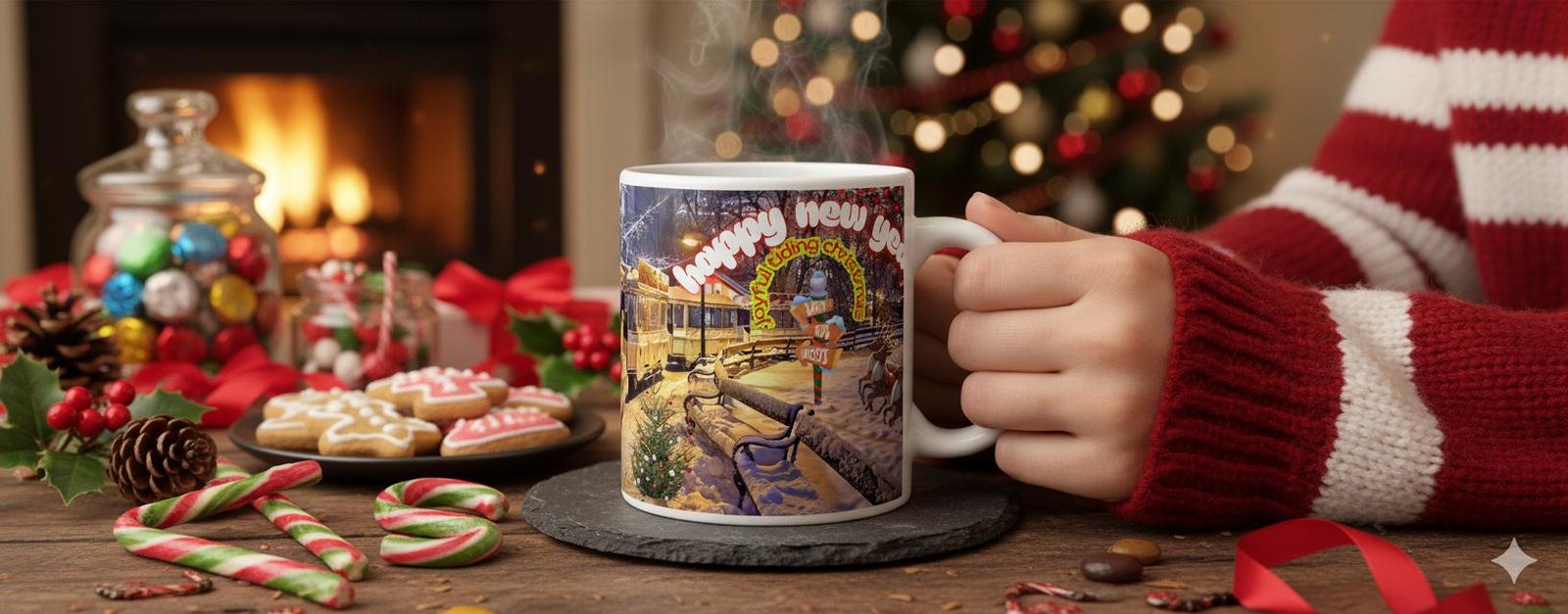 Bring joy, warmth, and holiday cheer with this Christmas mug with a Happy New Year banner. Add it to your collection or gift it to your loved ones for a memorable seasonal treat!