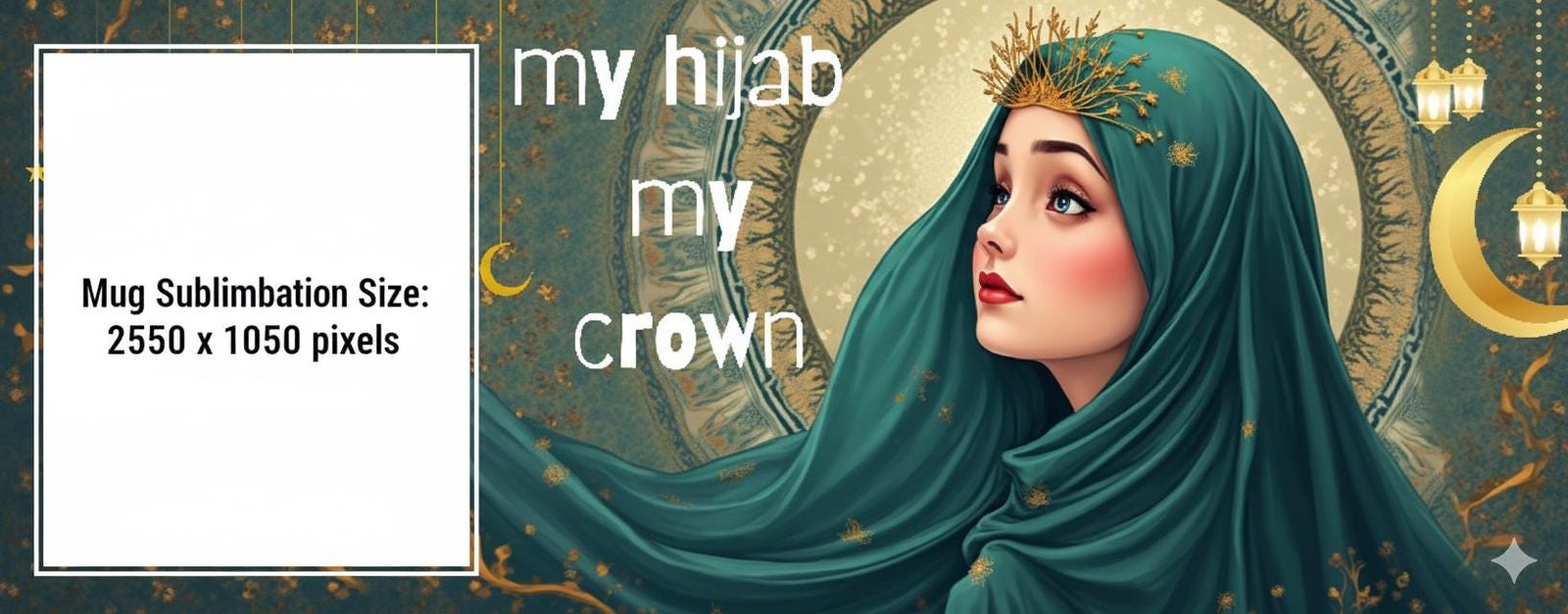 Islamic Hijab Crown Mug Tumbler Digital Download Wrap
